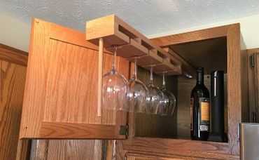 Wine Glass Holder Rack: The retractable wine glass holder was exactly what I needed in my kitchen! The red oak is beautiful and looks factory-made for the cabinet. Installation was as simple and easy as possible... I'm very satisfied with this item and I would recommend it to anyone who needs some extra space or organization in their cabinets or bar! Jonathan
